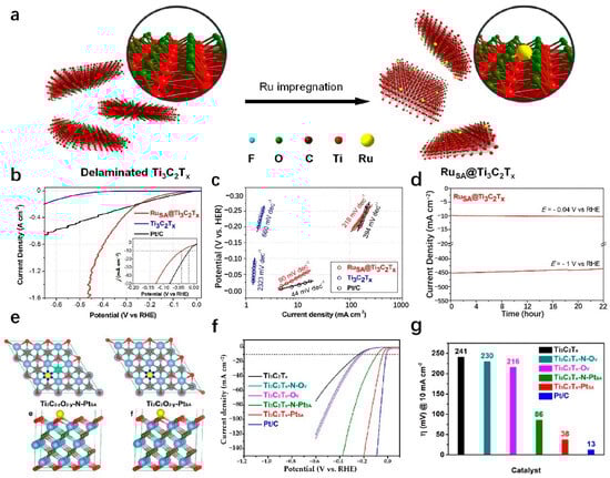 - Zou, Y.; Kazemi, S.A.; Shi, G.; Liu, J.; Yang, Y.; Bedford, N.M.; Fan, K.; Xu, Y.; Fu, H.; Dong, M.; et al. Ruthenium single-atom modulated Ti3C2Tx MXene for efficient alkaline electrocatalytic hydrogen production. EcoMat 2022, 5, e12274. [Google Scholar] [CrossRef]