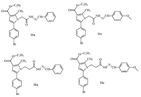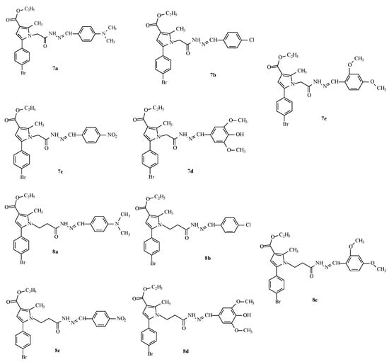 Some promising effects of previously synthesized from our group pyrrole-hydrazones obtained through condensation with a number of substituted benzaldehydes have been demonstrated and published [28] (Figure 2).