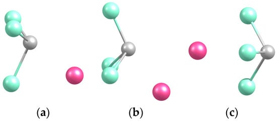 Ion pairs noncovalently attached to molecules may not necessarily result in bond formation via a cross-coupling or (e.g., in case of halo-organic rather than organic species) a cross-coupling-like reaction. In other cases, they could cause a reshaping of a trapped molecule, such as the unfolding of its bent structure under the pressure of mutually attracting counter-ions [,] or a molecule’s isomerization via bond rearrangement, as in M-BzO3-X → M-C6O3H6 [] and M-cubane-X → M-ladderene-X []. Additionally, an ion-pair-framed molecule could also preserve its integrity and overall shape while the system demonstrates notable modifications of its other properties. These can include polarity (with outstanding dipoles up to dozens of Debye), microwave and IR spectra (with considerably increased intensities), etc., as in M-CnHnFn-X (n = 3–6) [,,,,], M-Bz-X [,,,], and M-CnH2n-X (n = 3, 6) [,,]. In the latter case, the inserted nonpolar molecule (e.g., a hydrocarbon) stretches the ion pair, resulting in metastability of the system, while the polar insert (such as an all-cis halo-hydrocarbon) can stabilize the system relative to the separate molecule and ion pair, and even make it more stable than the isomeric complex of the directly attached components, as in molecule-MX. MX-trapped larger molecules (or, in other words, molecules such as the receptors of both M and X) have also been investigated [], including, for instance, cyclic species such as hexacyclen and calixpyrrole [,]. In particular, cyclic inserts have appropriate concave electron densities (lower at centers) accommodating the framing ions and preventing their association around the trapped molecules, especially the nonpolar ones.