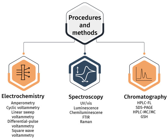 All of these reviews show multiple attempts to solve these issues separately using methods such as spectroscopy, chromatography, mass spectrometry, electroanalytical methods, and various other methods. To accelerate the comparison and gain a comprehensive understanding of potential and noteworthy applications in this field, our review involves a range of approaches. However, some works may overlook or insufficiently discuss the biochemistry of thiol groups and the crucial sample preparation step, which is vital due to the sulfhydryl group’s (–SH) high reactivity. Protecting the sulfhydryl group from oxidation during sample handling, storage, and analysis is essential but can increase the analysis duration, labor intensity, and demand for sensitive and assay-specific, specialized equipment and expertise [30,33]. This review is primarily dedicated to the various analytical methodologies used for the analysis of thiol and disulfide derivatives. To gain a better understanding of how biothiols are regulated, it is essential to familiarize oneself with the recent and pioneering research in the field dealing with antioxidant activity and capacity [34] and the functions of antioxidants [35].