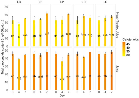 | 7 | J_LB_D7 | 57.37 ± 5.08 a | 14.56 ± 0.05 a | 169.26 ± 7.41 ab | ||