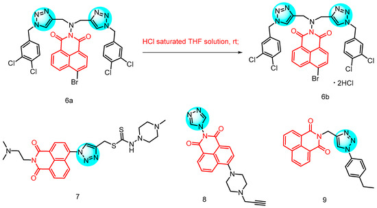 Chemical structures of Naphthalimide containing triazole hybrids 6a,b, 7–9.