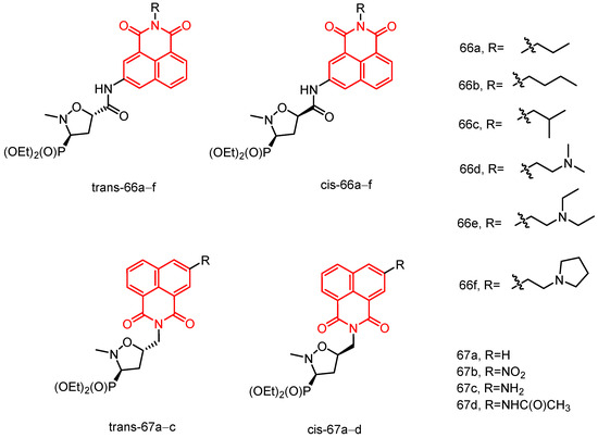 - Kokosza, K.; Andrei, G.; Schols, D.; Snoeck, R.; Piotrowska, D.G. Design, antiviral and cytostatic properties of isoxazolidine-containing amonafide analogues. Bioorganic Med. Chem. 2015, 23, 3135–3146. [Google Scholar] [CrossRef]