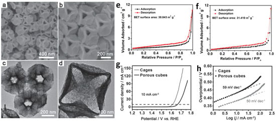 - Han, L.; Yu, X.-Y.; Lou, X.W. Formation of Prussian-Blue-Analog Nanocages via a Direct Etching Method and their Conversion into Ni–Co-Mixed Oxide for Enhanced Oxygen Evolution. Adv. Mater. 2016, 28, 4601–4605. [Google Scholar] [CrossRef]