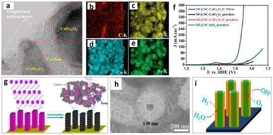 - Lu, X.-F.; Gu, L.-F.; Wang, J.-W.; Wu, J.-X.; Liao, P.-Q.; Li, G.-R. Bimetal-Organic Framework Derived CoFe2O4/C Porous Hybrid Nanorod Arrays as High-Performance Electrocatalysts for Oxygen Evolution Reaction. Adv. Mater. 2017, 29, 1604437. [Google Scholar] [CrossRef]