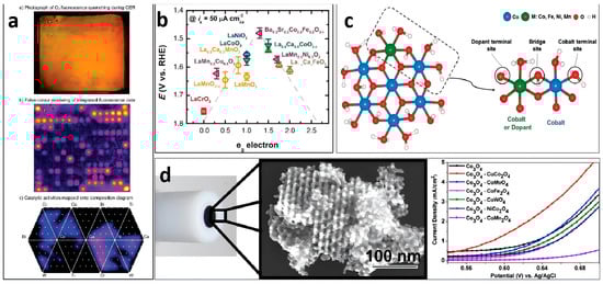 - Suntivich, J.; May, K.J.; Gasteiger, H.A.; Goodenough, J.B.; Shao-Horn, Y. A Perovskite Oxide Optimized for Oxygen Evolution Catalysis from Molecular Orbital Principles. Science 2011, 334, 1383–1385. [Google Scholar] [CrossRef] [PubMed]