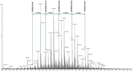 DI-ESI-TOF-MS spectra of thermally synthesized AESO. Identification of different acrylation series: ETG; pETG; ATG.