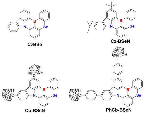 Chemical structure of the studied Se-doped derivatives, in which CzBSe and Cz-BSeN have been reported in the experiment, and Cb-BSeN and PhCb-BSeN were designed in the theory.