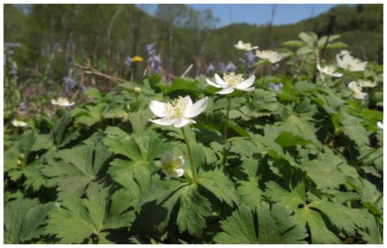 - Liu, D.Y.; Li, Y.; Zhao, B.; Zhou, H.L.; Liu, S.H.; Gao, F. Chemical composition and content determination analysis of the aboveground parts of Anemone raddeana rhizoma. Acad. Period. Chang. Coll. Tradit. Chin. Med. 2005, 21, 43–44. [Google Scholar] [CrossRef]