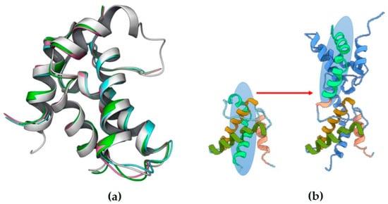 - Jumper, J.; Evans, R.; Pritzel, A.; Green, T.; Figurnov, M.; Ronneberger, O.; Tunyasuvunakool, K.; Bates, R.; Žídek, A.; Potapenko, A. Highly accurate protein structure prediction with AlphaFold. Nature 2021, 596, 583–589. [Google Scholar] [CrossRef]