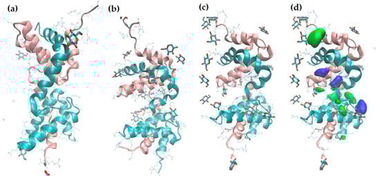 - Humphrey, W.; Dalke, A.; Schulten, K. VMD: Visual molecular dynamics. J. Mol. Graph. 1996, 14, 33–38. [Google Scholar] [CrossRef]