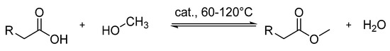 The advantage of homogeneous catalysis lies in its high catalytic performance due to the excellent accessibility of catalytic centers by the reactants, resulting in high catalytic activity. However, a disadvantage is the more complicated isolation of the catalyst from the reaction mixture. These features are inverted for heterogeneous catalysis, i.e., access to catalytic centers is hindered by external and internal mass transports, but the catalyst is easily separated from the reaction mixture. The latter feature is particularly advantageous for reactors with a fixed bed catalyst, which are widely used in large-scale productions, e.g., petrochemical processes such as hydrogenation, hydrocracking, alkylation, etc. [15]. A noteworthy variation is heterogenized catalysis, where the positive attributes of homogeneous catalysis are leveraged by anchoring catalytic moieties to a solid support. For example, resin-based catalysts such as sulfonated polystyrene-co-divinylbenzene are utilized in alkylation reactions, e.g., the formation of alkyl tert-butyl ethers, which are important ecological additives in motor fuels [15]. Another approach involves hybridized organocatalysts, where moieties containing “catalytic” heteroatoms are embedded within a polymer framework [10,16].