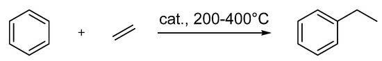 To approach kinetic regime conditions, it is necessary to minimize external and internal mass transports. The intensive mixing of reaction components enables the minimization of external transport. In a gas-phase reaction, external transport hindrance can often be neglected. The effect of internal mass transport decreases with the decreasing size of catalyst particles. The Weisz–Prater criterion, which evaluates the ratio of the chemical reaction rate to the diffusion rate of reactants, is commonly applied [11,50,75]. However, it is necessary to note that very small catalytic particles pose challenges for their separation from the reaction mixture. In the case of fixed-bed catalytic reactors, hydraulic resistance increases with the decreasing size of catalytic particles. Generally, particles smaller than 50 µm are not suitable for batch applications (stirred reactors), and particles smaller than 2 mm are unsuitable for fixed-bed reactors. Catalysts for fixed-bed industrial reactors have a characteristic dimension of 5–10 mm and often feature special shapes, e.g., rings, cylinders with hollows, stars, and similar shapes [5,50].