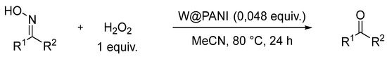 - Li, W.; Wang, F.; Shi, Y.; Yu, L. Polyaniline-supported tungsten-catalyzed oxidative deoximation reaction with high catalyst turnover number. Chin. Chem. Lett. 2023, 34, 107505. [Google Scholar] [CrossRef]