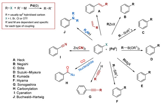 - Biffis, A.; Centomo, P.; Del Zotto, A.; Zecca, M. Pd Metal Catalysts for Cross-Couplings and Related Reactions in the 21st Century: A Critical Review. Chem. Rev. 2018, 118, 2249–2295. [Google Scholar] [CrossRef]