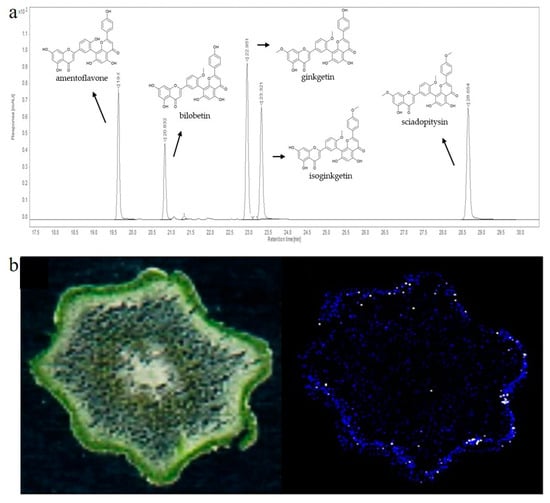 - Beck, S.; Stengel, J. Mass Spectrometric Imaging of Flavonoid Glycosides and Biflavonoids in Ginkgo biloba L. Phytochemistry 2016, 130, 201–206. [Google Scholar] [CrossRef]