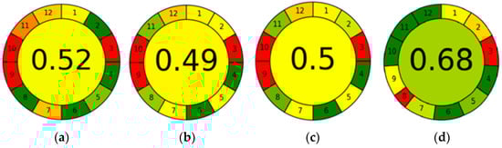 The results of the greenness assessment of the four chromatographic methods performed using the AGREE application are shown in Figure 5. In three of the methods, UPLC-PDA-MS/MS, SPME/GC-MS with CAR/PDMS fiber, and SPME/GC-MS with PA fiber, equal default weights were assigned to all the 12 principles (p 1–p 12), thus assuming that all the evaluation principles were equally important. However, in ultra-fast GC, a weight of 1 was assigned to principle 8 (number of analyses determined in a single run), because this method can be used to determine volatile compound profiles (fingerprints) but not volatile components.