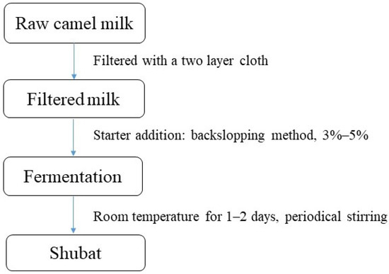 This traditional beverage is created through spontaneous fermentation by dominant lactic acid bacteria present in fresh milk [114], a technique passed through generations with minimal changes. The spontaneous fermentation of Bactrian camel milk is characterized by a dynamic shift in microbial community composition over a period of several days at ambient temperature. This process results in a significant transformation of both bacterial and fungal populations. Initially, the bacterial community is dominated by the genus Lactococcus, which subsequently gives way to Lactobacillus as the predominant genus. Concurrently, the fungal community undergoes a transition from a diverse assemblage comprising Apiotrichum, Cutaneotrichosporon, and Candida to one primarily dominated by Kazachstania and Kluyveromyces. The culmination of this microbial succession is the production of a distinctive fermented beverage. This end product is notable for its snow-white appearance, sour taste profile, and pleasant flavor characteristics. Moreover, the fermentation process imparts a relatively high viscosity to the final product, further distinguishing it from the original unfermented milk [115]. Recently, this traditionally prepared fermented beverage has gained popularity among all age groups in both rural and urban areas because of its reported nutritional benefits and medicinal properties, including antidiabetic, anticancer, and antituberculosis effects. However, the traditional method of spontaneous fermentation of unheated milk raises concerns about the product’s safety and potential quality issues, such as excessive sourness, creaming, and precipitation.