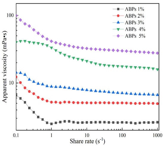 Apparent viscosities of different concentrations of ABPs with the shear rate.