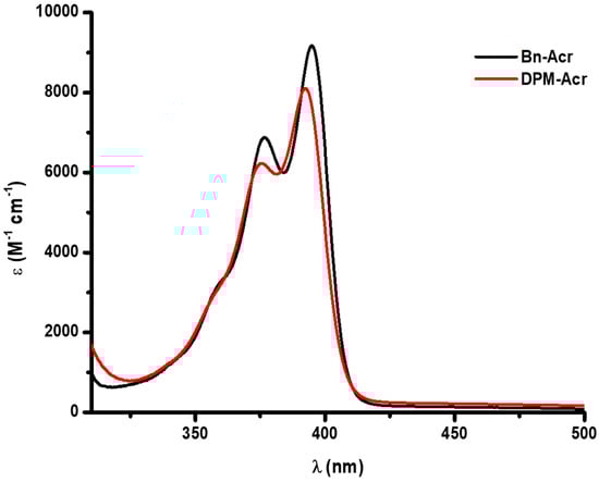 Figure 1. UV–visible absorption properties of compounds Bn-Acr and DPM-Acr in acetonitrile.