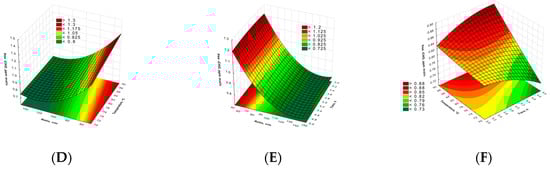Response surface plots for TCC (A–C) and RS (D–F).