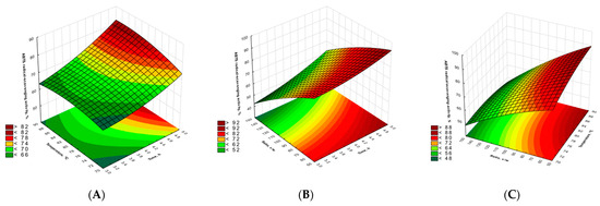 Response surface plots for ABTS antioxidant scavenging (A–C).