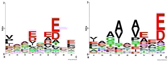 - Schneider, T.D.; Stephens, R.M. Sequence Logos: A New Way to Display Consensus Sequences. Nucleic Acids Res. 1990, 18, 6097–6100. [Google Scholar] [CrossRef] [PubMed]
