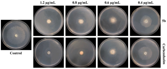 In vitro antifungal activity of compound 5b against S. sclerotiorum.