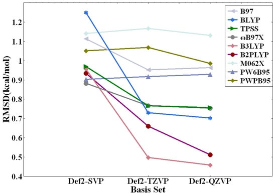 DFT MethodRMSD (kcal/mol)MAE (kcal/mol)AVG (kcal/mol)MAX%