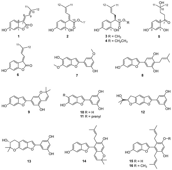 Structures of compounds 1–16 isolated from Cortex Mori Radicis.