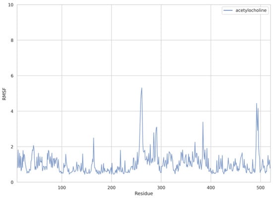 Plots of RMSF per residue [in Å] for the AChE—ACh system.