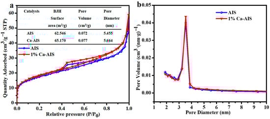 (a) N2 adsorption–desorption isotherms and (b) corresponding pore size distributions of AIS and 1%Ca-AIS.