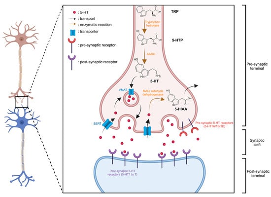 Representation of serotonergic synapse. Created with BioRender.com accessed on 15 January 2024.