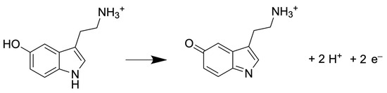 Regardless of the detector used, the number of electrons exchanged determines the measured current during the analysis. In case of detecting 5-HT, the number of electrons exchanges is 2 during the oxidation, as shown in Figure 5.