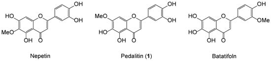 We recently gave attention to the biological modulations of sinensetin, which possesses strong anti-vascular and anti-inflammatory properties. Sinensetin, 5,6,7,3′,4′-pentamethoxyflavone was identified as, interestingly, leading a unique family of the monomethoxytetrahydroxyflavones comprising nepetin (5,7,3′,4′-OH, 6-OMe), pedalitin (7-OMe), and batatifolin (3′-OMe), as shown in Figure 1 []. Most flavonoid synthesis is heavily dependent on methoxylated acetophenones and benzaldehydes, as readily available aldol partners. However, the selective demethylation of polymethoxyflavones is hard to achieve and thus randomly selected from the vast pool of Brønsted and Lewis acids, depending upon the location and number of methoxy groups on the flavone ring [,,]. Due to the lack of selective demethylation, a protection–deprotection strategy is frequently required to avoid such complexity [].