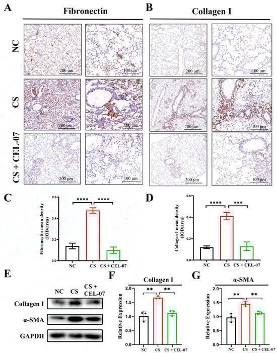 2.2. CEL-07 Suppresses CS-Induced Lung Fibrosis