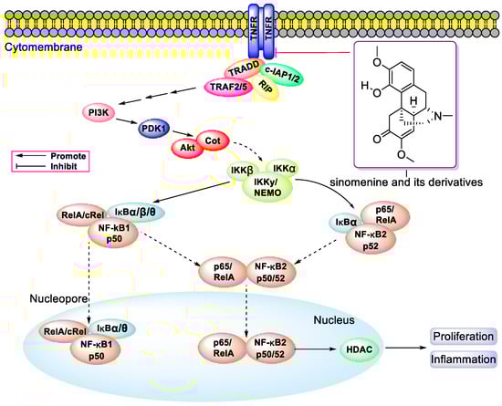 NF-κB pathway related to the antitumor and anti-inflammation activities of sinomenine and its derivatives.