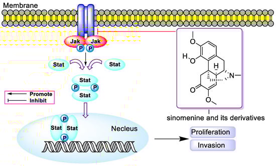 JAK/STAT pathway related to the anti-proliferation and anti-invasion activities of sinomenine and its derivatives.