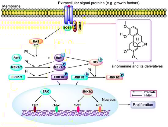 MAKP pathway related to the antitumor activity of sinomenine (or SH) and its derivatives.
