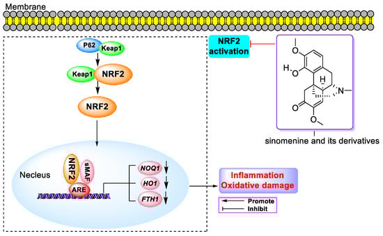 Keap1/NRF2 pathway related to the anti-inflammation and anti-oxidation activities of sinomenine and its derivatives.