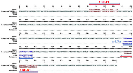 Rapid and Ultrasensitive Detection of H. aduncum via the RPA-CRISPR/Cas12a Platform