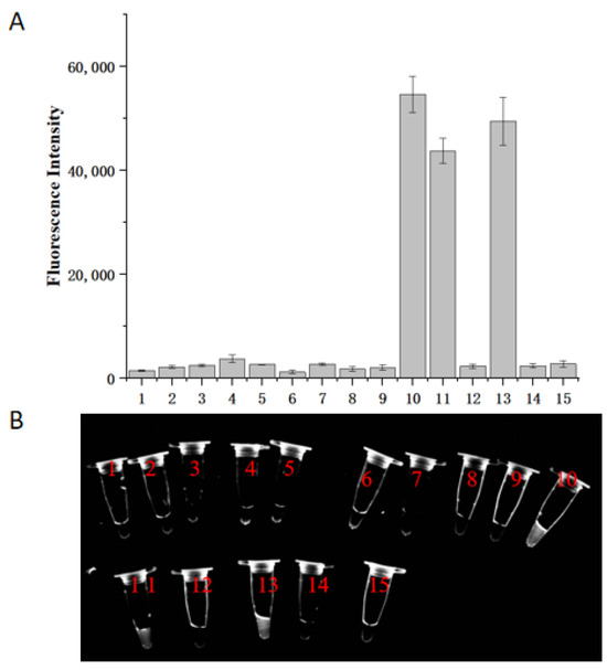 3.4. RPA-CRISPR/Cas12 Assay and Its Specificity