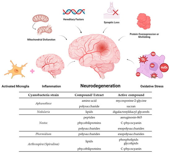 General mechanisms of neurodegeneration and the most promising cyanobacterial natural products for the prevention of neurological disorders include those with well-documented anti-inflammatory and antioxidant properties.