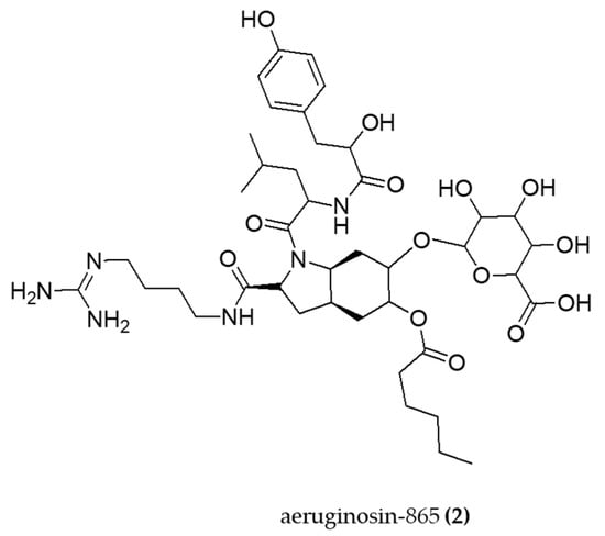 Structure of aeruginosin-865 (2) is a nonribosomal linear tetrapeptide that inhibits interleukin-8 (IL-8).