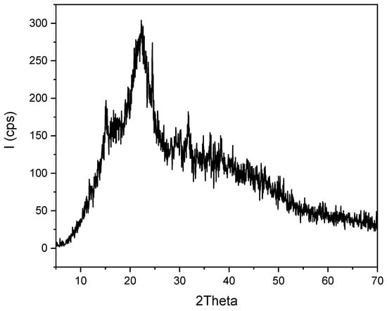 Figure 4 illustrates the X-ray diffraction (XRD) pattern of Zygophyllum gaetulum stem powder. The presence of an intense peak at approximately 2θ ≈ 23°, with a value of around 300 cps, indicates the existence of a crystalline phase. This can be attributed to the properties of crystalline cellulose, which is a principal constituent of plant cell walls [43].