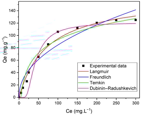 In the present study, the isotherms used to determine the effect of dye concentration on our phenomenon were the Langmuir, Freundlich, Temkin, and Dubinin–Radushkevich isotherms.