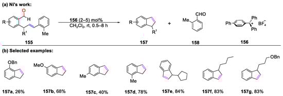 This section includes two major parts: (1) a carbonyl–olefin metathesis cyclization reaction catalyzed by metal; and (2) a carbonyl–olefin metathesis cyclization reaction catalyzed by metal-free condition.