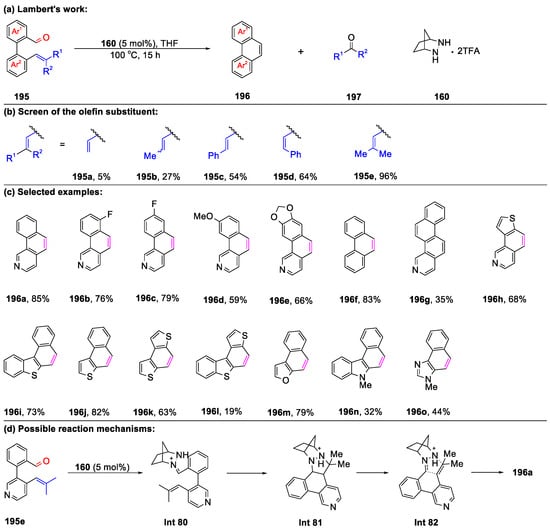 - Cho, E.K.; Quach, P.K.; Zhang, Y.F.; Sim, J.H.; Lambert, T.H. Polycyclic heteroaromatics via hydrazine-catalyzed ring-closing carbonyl-olefin metathesis. Chem. Sci. 2022, 13, 2418–2422. [Google Scholar] [CrossRef]