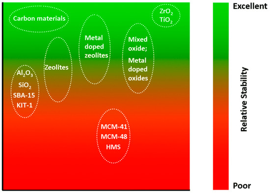 Hydrothermal stability of supports for heterogeneous catalysts in hot water at less than 374 °C. Reprinted from ref. [32] with permission. Copyright 2014 Royal Society of Chemistry.