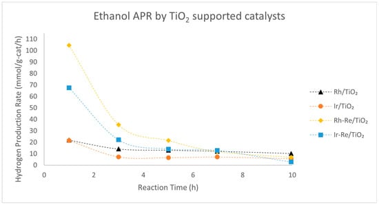 - Nozawa, T.; Yoshida, A.; Hikichi, S.; Naito, S. Effects of Re addition upon aqueous phase reforming of ethanol over TiO2 supported Rh and Ir catalysts. Int. J. Hydrogen Energy 2015, 40, 4129–4140. [Google Scholar] [CrossRef]